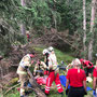 Die Feuerwehr unterstützte die Bergrettung sowohl bei der technischen Rettung als auch bei umfangreichen Erste-Hilfe-Maßnahmen sowie beim Abtransport der Verletzten.