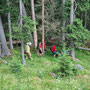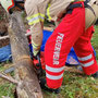 Nachdem der Unfallort geortet war, konnte die eigentliche Rettungsaktion in Zusammenarbeit mit einem Notarzt starten. Ein Forstarbeiter, der unter mehreren Baumstämmen eingeklemmt war, musste mit