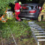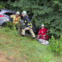 Das Übungsszenario hatte es in sich: Ein Pkw war von der Fahrbahn abgekommen und einen steilen Abhang hinuntergestürzt. Drei Personen galten als betroffen – zwei davon waren im Fahrzeug