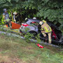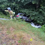 eingeklemmt. Erschwert wurde die Rettung durch die steile Hanglage und starken Dauerregen, der die Bedingungen zusätzlich verschärfte.